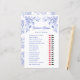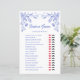 Fügen Sie Ihrem Brautparty mit diesem Blauen Blütenbräu oder dem Game Lachen hinzu. Mit Vintagem blauen Toilblütenblumen ist es perfekt für ein Tee-Party-Brautparty, ein blaues Thema oder eine klassische Gartenfeier. Die Gäste raten, wer es gesagt hat - Braut oder Bräutigam - für einen lustigen Eisbrecher, den jeder genießen wird. In unserer Blue Floral Tea Party Brautparty Collection können Sie weitere passende Stücke bestellen, um das Aussehen zu vervollständigen.