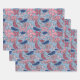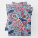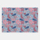 Blauer Blütenblock mit rosa und blauer Hand drucke Geschenkpapier Set