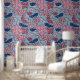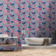 Blauer Blütenblock mit rosa und blauer Hand drucke Tapete