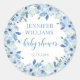 Eleganter blauer Blütenjunge dusche runde Aufkleber.