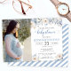 Laden Sie Liebhaber ein, um Ihren kleinen Jungen mit unserer eleganten rustikalen Baby Boy Dusche Foto Einladung zu feiern. Mit wunderschönen blauen Aquarellfarben-Blume und einer zarten Kalligraphie-Schrift Set es den perfekten Ton für Ihren besonderen Tag.