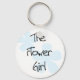 Helle pastellblaue Blumen und schwarzer Text mit der Aufschrift "The Flower Girl" werden auf Taschen, T - Shirt, Tasse, Tasten, Karten und anderen Mädchen-Artikeln der Blume gezeigt. Dieses Design ist auch für die Braut, Trauzeugin, Ehrentribüne, Bridesmaids und mehr erhältlich! Sie können sogar ihren Namen vor Ort hinzufügen!