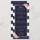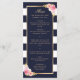 Elegantes marineblaues, blau-weiß gestreiftes Blumenmenü, das mit blauen, rosafarbenen Blume und vergoldetem Grün besticht. Matching-Elemente verfügbar.