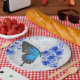 Sie werden sich mit diesen wunderschönen Tellern, die einen blühenden Schmetterling bewundern, amüsieren.