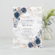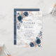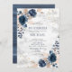 Blauer Blütenstaub PInk Rose Marmor Blumenhochzeit Einladung