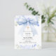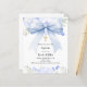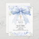 Weiß, mit einem hellblauen großen Bogen verziert, goldenes Kreuz und blauen Blumen, Blume. Personalisieren Sie den Namen und Details und fügen Sie diese hinzu. 1 Blatt = 1 Einladung mit Druckkante bis Kante.