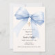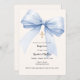 Das weiche beige, cremefarbene Dekor ist mit einem hellblauen großen Bogen und einem goldenen Kreuz geschmückt. Personalisieren Sie den Namen und Details und fügen Sie diese hinzu.