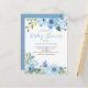 Blauer botanischer Babydusche Einladung Postkarte. Trendy, hübsch bläulich-blühende Aquarellgestaltung. Einfach den Text ändern.