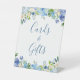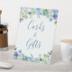 Blauer botanischer Hydrangea Blumenkarten und Geschenkgutschein Pedestal Sign. Die Standardgröße beträgt 8 x 10 Zoll, Sie können sie in andere Größen ändern. Für weitere Anpassungen verwenden Sie bitte das Design-Tool von Zazzle, um diese Vorlage zu ändern.