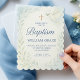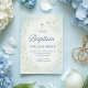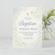 Die friedliche Aquarelltüte mit einem Olivenzweig, einem goldenen Kreuz und sanften, grünen botanischen Akzenten lädt zu dieser eleganten, blauen Taufe ein. Set in beruhigenden Pastelltönen mit klassischen Serif- und Script-Schriftart, diese Einladung ist eine schöne Wahl für den besonderen Tag Ihres Babys.