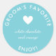 Ein einfacher Aufkleber für Gastgeschenke Hochzeiten mit "Groom's favorit" auf weißem Hintergrund. Die Idee ist, dass Sie diese Aufkleber verwenden, um Ihre Gastgeschenke Hochzeiten zu dekorieren, indem Sie zum Beispiel zwei Süßigkeiten-Bars oder Miniflaschen Alkohol geben, die die Favoriten des Ehepaares sind. Das würde auch gut funktionieren, um Seinen Lieblingscocktail im Rahmen eines Süßspeisenbüffets zu dekorieren oder Schokoladenkisten zu dekorieren. Sie können die Hintergrundfarbe auf das ändern, was Sie gewollt haben, und Sie können den Text so ändern, dass er mit dem von Ihnen verwendeten Element übereinstimmt, inklusive Ihrer bevorzugten Schreibweise von 'favorit'. Sie können auch das "Genießen" zu einer kleinen Dankesbotschaft ändern oder ganz löschen, um mehr Platz zu machen, um Ihr Element zu beschreiben. Sie können den Namen auch in "Braut's Liebling", "Jamies Liebling" oder "Ihr Favorit" ändern, wenn Sie es vorziehen.