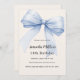 Ein zartes beige, cremefarbenes Dekor, das mit einem großen, hellblauen Bogen geschmückt ist. Personalisieren und fügen Sie einen Namen und Party-Details hinzu.