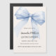 Ein zartes beige, cremefarbenes Dekor, das mit einem großen blauen Bogen geschmückt ist. Personalisieren und fügen Sie einen Namen und Party-Details hinzu.