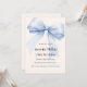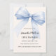 Ein zartes beige, cremefarbenes Dekor, das mit einem großen, hellblauen Bogen geschmückt ist. Personalisieren und fügen Sie einen Namen und Party-Details hinzu.