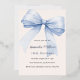 Ein zartes beige, cremefarbenes Dekor, das mit einem großen, hellblauen Bogen geschmückt ist. Personalisieren und fügen Sie einen Namen und Party-Details hinzu. Der Name und das Alter sind mit echter Silberfolie geschrieben.