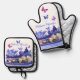 BLAUER CHARIOT VON SCHWANKEN, BÜTTERFLIESSEN UND K OFENHANDSCHUH & Topflappen-Set