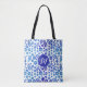 Handgezeichnete Blume und Blätter in verschiedenen Größen und Formen, die in einer wunderschönen, blauen Aquarellstruktur gefärbt sind. Die verwendeten Blautöne sind in den gleichen Tönen gehalten wie die Töpferwaren aus blauer China. Dieses illustrierte Muster ist hübsch, einfach und elegant! Um dies zu einem personalisierten Geschenk zu machen, wechseln Sie den Initial im gepunkteten blauen Rahmen!