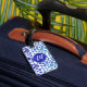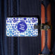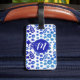 Blauer China, Blütenmuster und Monogramm Gepäckanhänger