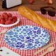 Blauer China Handgezeichnetes Blumenmuster Pappteller