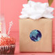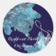 BLAUER CHRISTMAS STAR , ELEGANTER BLUME IN GLITZER RUNDER AUFKLEBER