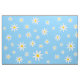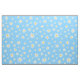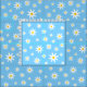 Ein Muster weißer, dunkler Blume auf blauem Hintergrund.