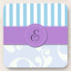 Blauer Damast, blaue Streifen, Streifen, Monogramm Untersetzer