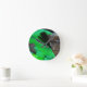 Blauer Damselfly auf einem grünen Blatt Runde Wanduhr