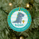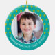 Dieser personalisierte Foto-Schmuck ist ein wunderbares Erinnerungsstück für Ihren Lieblings-Absolventen des Kindergartens oder dessen Familienmitglieder. Die Vorderseite zeigt eine fantasievolle und spielerische Darstellung eines süßen, fetten, kawaii, navyblauen T-Rex und eine lustige, handgeschriebene Typografie auf einem hell-türkisblauen und weißen gestreiften Hintergrund. Ein bezauberndes Palmenbaum-Muster, das türkisblau überlagert ist, befindet sich auf dem Rand und umrahmt die Illustration. Auf der Rückseite befindet sich das Foto Ihrer Wahl. Personalisieren Sie den individuellen Text mit dem Namen und dem Abschlussjahr Ihres Absolventen. Personalisieren Sie den individuellen Text mit dem Namen Ihres Absolventen und einer besonderen Nachricht. Wahlweise aus Keramik-, Metall-, Glas- oder Premium-Metallrahmen-Materialien und in Kreis- oder Quadrat-Form erhältlich. Passende Einladungen, Banner, Pappteller und Servietten, Aufkleber und andere Abschluss-Artikel sind ebenfalls in dieser coolen und besonderen Kollektion erhältlich. Garantiert, um wertvolle Erinnerungen an diesen besonderen Anlass zu bewahren! Ersetzen