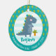 Blauer Dinosaurier-Junge Kindergarten-Abschlussand Keramik Ornament