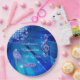 Frauen personalisiert, eleganten kundenspezifischen Abschluss-Partyfeier-Papier-Tellers. Schöne blaue Vorlagen für den Abschluss einer Frau. Dieser Teller hat einen funky retro Discospiegelball, bezaubernden einen Druckbild-Kristall-/-diamant-Glitter, Sequins, Heelsstilettschuhe des Juwelscheins hohen und glittery eine musikalische Anmerkung/eine Musiknote mit Glitzern auf einem noblen Blau mit weißen Lichtern und Glitzernhintergrund. Chic, niedlicher, girly, moderner PapierTeller mit den trendy, modernen Farben. Dieser coole, groovy, stilvolle, hoch entwickelte, hübsche Party-Teller wird verziert,/gedruckt auf nur einer Seite. Perfekter Teller für Abendessen tanzt Tanzenereignis-Partys. MERKEN SIE BITTE: Alle Produkte auf Zazzle haben Ebenedruckbilder. Wenn Sie irgendeine Unterstützung benötigen, die Ihr Produkt in Verbindung treten besonders anfertigt mit mir bitte, durch meinen Speicher und ich bin glücklich zu helfen.