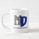 Weiße riesige Tasse, die blauen Dracheentwurf MacLeod Drachen kennzeichnet.