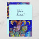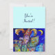 Farbenfrohe, skurrile und lebendige Aquarellmalerei in leuchtend roten, blauen, grünen, goldgelben, rosa, fuchsienfarbenen, die vom Karneval von Venedig und der Commedia dell'Arte inspiriert wurden. Ein ausdrucksstarker Flötenspieler in der Nacht , Mondlicht und eine blaue Katze. Dieses coole und künstlerische Design ist auch ein wunderschönes Geschenk für besondere Anlässe, Geburtstage, Hochzeiten, Weihnachten, Ferien, Mardi Gras, Karnevalssaison.