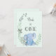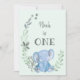 Blauer Elefant mit Blumendesign Erstgeburtstag Einladung mit anpassbarer Hintergrundfarbe und Text.