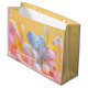 Blauer Elefant, rosa Pferd auf gelb Große Geschenktüte