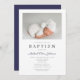 Personalisiert Navy Blue Elegant Foto Boy Taufe Einladung.