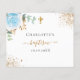 Weiß mit Eukalyptusgrün dekoriert, ein blauer, wasserfarbener Glitzer, goldene Blätter und Imitate fallen ins Gold. Zurück: Personalize, Name der Kinder und das Zeremonie-Datum