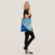 Der moderne, geometrische Stil der Schultertasche ist mit einem farbenprächtigen blauen Druck in gekleideten Farbblöcken gestaltet. Personalisieren Sie mit Monogramm für eine individuelle Tasche, die ein wunderbares Geschenk oder ein nettes Geschenk für sich selbst macht.