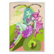 Die schöne blaue Fee, die am vibrierenden grünen Pflanzen-Set an einem Pfirsichhintergrund sich lehnt und erblassen farbige Blume. Dieses faszinierende Geschöpf wird in den Rosa gekleidet und Purpur und ihr dunkelblaues gelocktes Haar kontrastiert gegen ihre blaue Haut. Ein herrliches Fantasiegeschöpf, das gerade herum in der Nachbarschaft lounging ist.