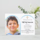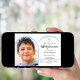 Fügen Sie Ihr eigenes Foto in vertikaler Größe hinzu. Ein himmelblau gefärbter bogenförmiger Rahmen aus Foto. Eine weiße Hintergrundfarbe. Personalisieren und fügen Sie einen Namen und Details.