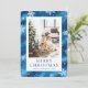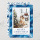 Elegante Imitate blaue Folie Frohe Weihnachtskarte mit Schneeflocken. Personalisieren Sie diese Urlaubskarte einfach mit Ihrem Foto und Text.