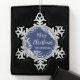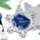 Blauer Weihnachtsschneeflocke mit weißen Blume aus Blumeneis und dem eigenen Text. Erhältlich auch in Grün und Maron.