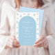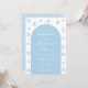 Entdecken Sie unsere reizvolle, hellblaue Babydusche, die eine charmante und niedliche Baby Blue Spring Blume mit boho schicken Bogen und blauem Gingham auf der Kartenrückseite zeigt. Dieses bezaubernde Design ist perfekt, um Ihre Kleine mit Freude und Eleganz zu empfangen.