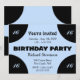 Hellblaue Mitte auf schwarzen Geburtstagsparty einladen. Blau und Schwarz verleihen dem einen modernen Look. Geben Sie das Alter hinzu oder verließe Sie es leer - Vollständig mit UAWG