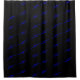 Dieses Design zeigt symmetrische, lebendige, blau geometrische Stripmuster, die auf einer tiefen schwarzen Leinwand dargestellt sind, und schafft ein ausgesprochen stilvolles Duschvorhang-Akzent.
