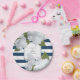 Blauer gestreifter weißer Hydrangea-BlumenKranz Pappteller