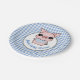 Blauer Gingham-Piggy Babyparty Pappteller