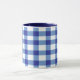 Blaue Ginghamkaffee-Tasse. Kundengerechte Tasse mit einem blauen Ginghammuster.