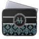 Blauer Glitzer gedruckt, schwarzer Damast Laptopschutzhülle