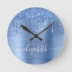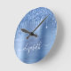 Blauer Glitzer Personalisiert Runde Wanduhr
