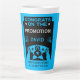 Blauer Glückwunsch zur Werbeaktion von Arbeitsplät Milchtasse